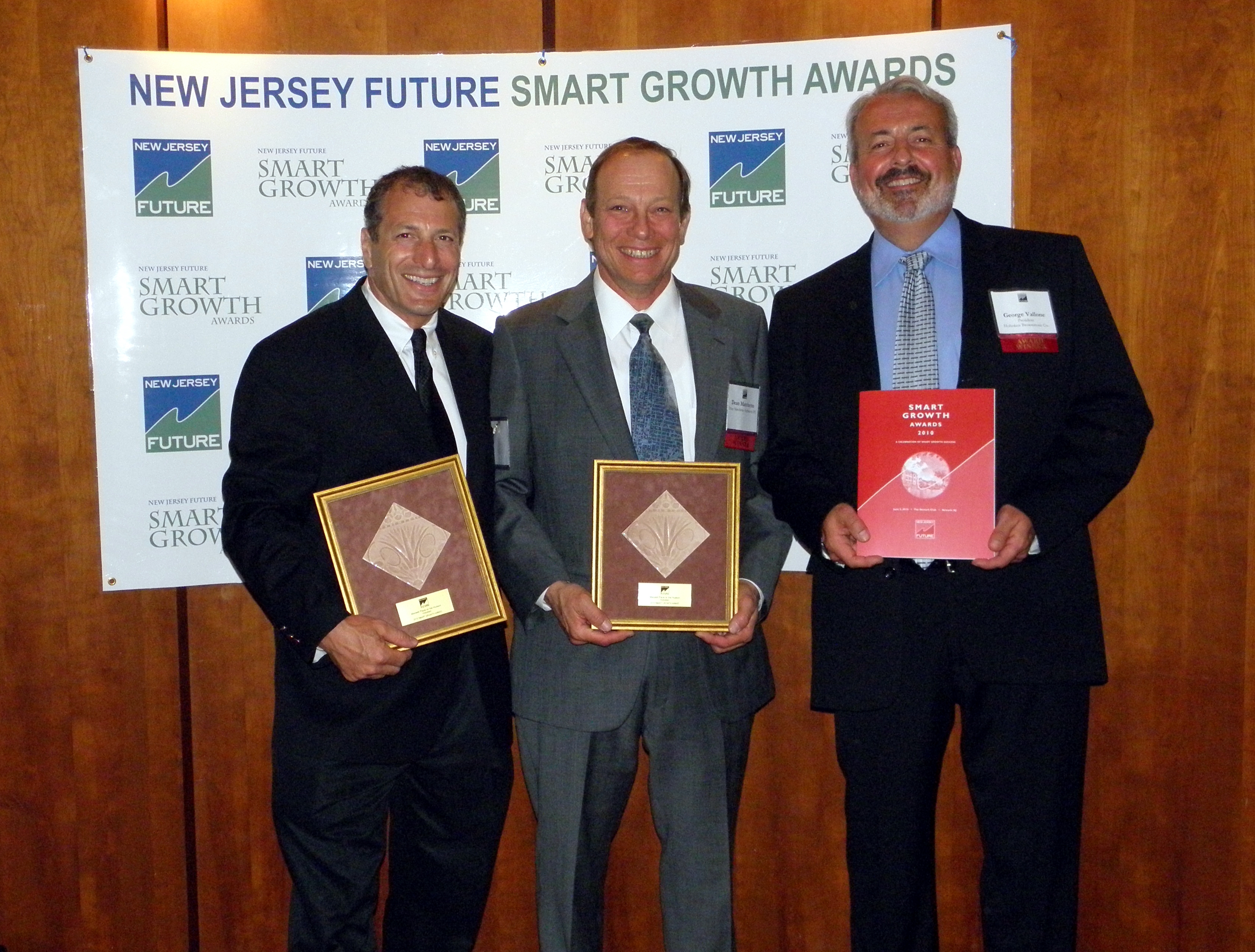 The development was voted best in the state in the Mixed-Use Waterfront Enhancement Category. The prestigious award was recently presented to Daniel Gans and George Vallone of Hoboken Brownstone Company, which was responsible for realizing the vision of Maxwell Place in conjunction with Dean Marchetto Architects and Toll Brothers, at the New Jersey Future’s 9th annual Smart Growth Awards ceremony held on June 2nd at the Newark Club.