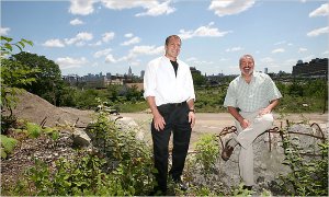 Photo Credit: Chester Higgins Jr./The New York TimesSunday’s New York Times had a story on Daniel Gans (left) and George Vallone of Hoboken Brownstone who are turning a seven-acre brownfield into a sustainable development. Clean up of the soil has begun and construction should begin by the end of the year. The new residences will feature a secure pedestrian route to a nearby light-rail transit station, autoclave aerated concrete (mostly used in countries other than the US), and the the buildings will be built to operate at 50 to 90 percent less energy than conventional buildings. The state Board of Public Utilities recently awarded the project a $3.6 million grant to help develop alternative energy sources. You can read the full story here.