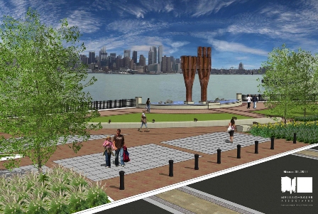 “The final design of this park was approved by Weehawken earlier this year, and we felt it would be very meaningful to have actual steel from the World Trade Center included in the memorial,” Mr. Goldberg said. “The park will include passive recreation space where people will be able to sit and remember what none of us have the luxury of forgetting, the events that occurred on that fateful day of Sept. 11.”