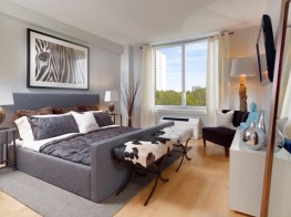 Residents also enjoy an active lifestyle with a lounge featuring billiards and ping pong, state-of-the-art fitness center, yoga studio, children’s playroom, game room, virtual golf simulator, outdoor terrace and business center all located within the buildings.