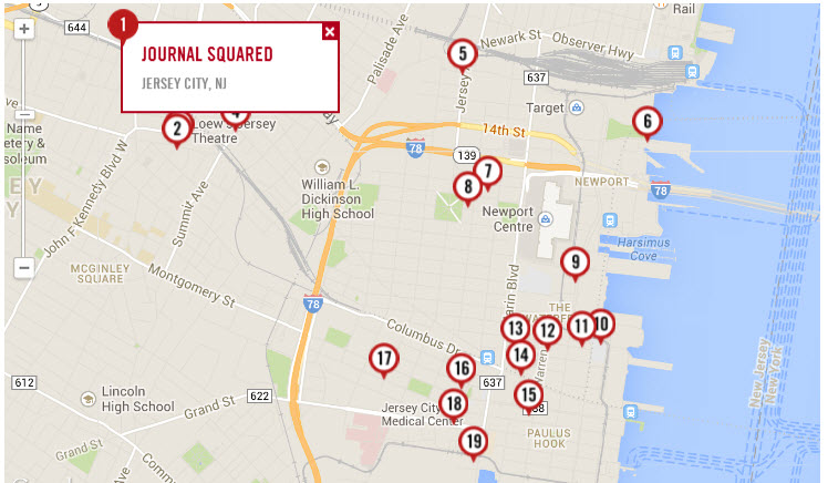 Following the leads of neighboring Hoboken and the old, artist-filled Brooklyn it calls its muse, still-rugged Jersey City is undergoing a swift transformation that is bothmarket-driven and politically motivated. Brownstones are being restored, new restaurants and cafés are popping up throughout town, and MANA Contemporary is actively luring priced-out painters, photographers and other “makers” to its massive and growing compound that offers the holy grail of cheap rents and huge space. To track the building boom, we mapped 19 new residential developments. Most are in the planning stages or under construction, but a few have recently opened. If you see one we missed, please let us know in the comments section or on the tipline.