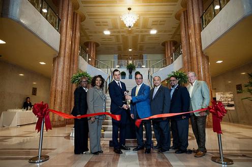 Apparently not all Paramount residents knew about today’s event. During one of the speeches, a resident of a first-floor apartment entered the lobby barefoot and was taken aback by the substantial media presence.