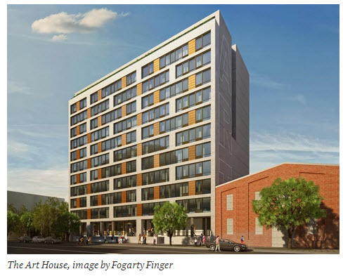 A tipster submitted renderings of Jersey City’s Art House, located at 148 First Street, in the Powerhouse Arts District. The Shuster Group is developing, and Fogarty Finger is the project’s architect.