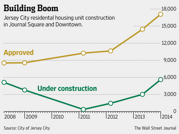 “Jersey City’s residential construction boom is spreading beyond its waterfront area to neighborhoods farther inland where planners and developers have long dreamed about building with little to show for it until now.