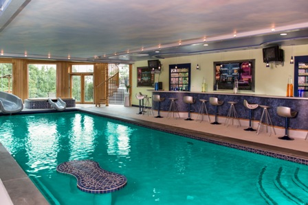 Yet, what unquestionably separates the estate from the marketplace is abundance of resort-style recreational facilities that create a one-of-a-kind family living and entertainment environment. The residence boasts a full-sized indoor basketball court with SportCourt flooring and a balcony with bleachers, huge outdoor living area with built-in ten person hot tub and fire pit, indoor pool with waterslide and hot tub, full size bowling alley, bar with arcade games, sauna, locker rooms, billiard room, batting cage and outdoor professional putting green.