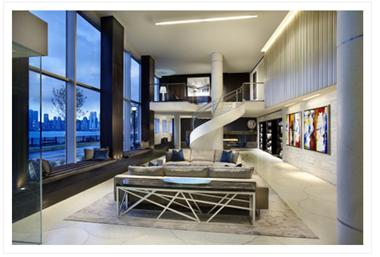 Residents don’t have to leave home, however, to enjoy a lifestyle rich in luxury and service. The building’s all-glass façade provides stunning skyline views stretching from The Freedom Tower to the George Washington Bridge. Designer finishes and appointments throughout the residences include Brazilian Chestnut hardwood floors in main living areas, and gourmet kitchens with a GE Monogram Appliance Suite including Pro Style Range, Avantium oven with SpeedCook Technology, direct vented Avantium hood to outside air exhaust, and an Energy Star®-rated refrigerator and dishwasher. Kitchens also feature under-counter wine coolers in select residences, Spazzi European cabinetry in a raked wood finish with integral handles, DalTile marble kitchen floors and marble backsplash, and granite counter tops.