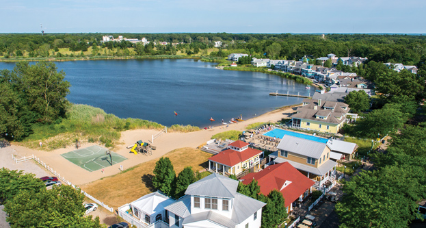 First introduced in 1994, Beachwalk boasts quaint candy colored cottage style homes and a long list of resort amenities, including the private 24-acre Lake Kai, a community pool, tennis court, beach volleyball, parks and access to the beautiful shoreline of Lake Michigan. The family-inspired vacation community boasts a unique design originally based on the award-winning, new urbanist town of Seaside, Florida. Homes mix eclectic exteriors ranging from traditional American and traditional beach-style design to traditional Michigan City architecture to create distinctive and eye pleasing streetscapes.