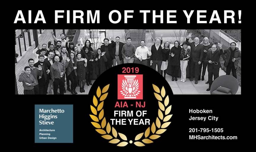Hudson County-based Marchetto Higgins Stieve Architects (MHS Architects) was just named “Firm of the Year” by the American Institute of Architects (AIA) New Jersey Chapter. The award was announced as part of AIA’s 2019 Service Awards and the honor distinguishes MHS Architects for their work as well as their success and significant expansion over the past year.