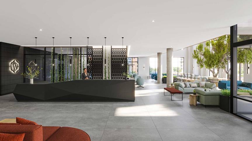 Construction is nearly complete on 1100 South 5th Street, a new rental building in Harrison, New Jersey. From developer Advance Realty, the property will debut as The Wyldes and contain 399 rental apartments and 70,000 square feet of amenities.